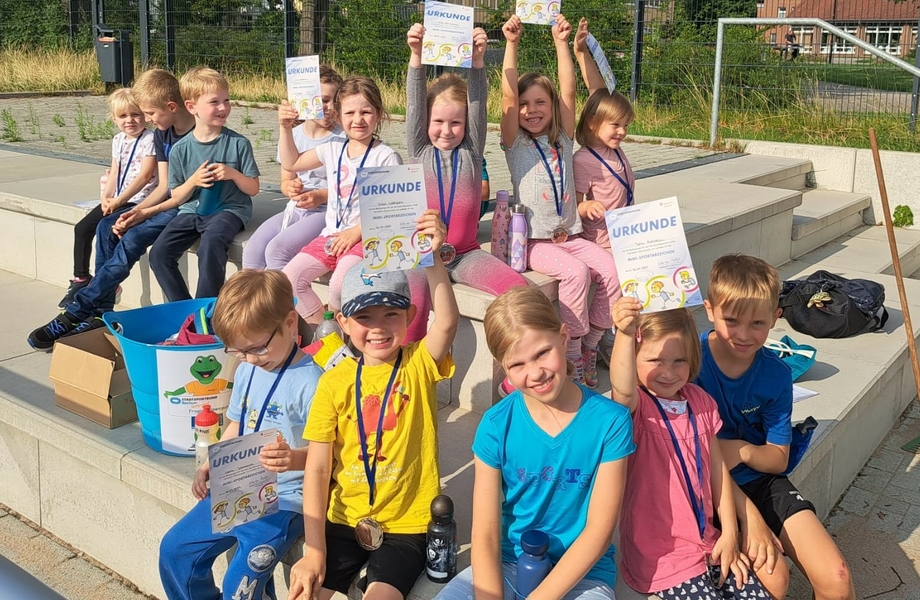 Dreizehn Mädchen und Jungen erledigten die vier gestellten Aufgaben und konnten sich hinterher über eine Urkunde und die Medaille freuen.
