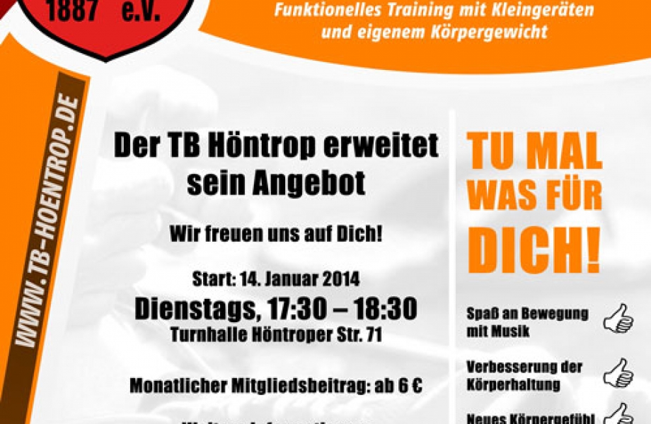 Aus dem gut angenommenen vorweihnachtlichen Schnupperkurs unter der Leitung von Martina Jäger wird ab dem 14. Januar eine neue feste Gruppe im Angebot des TB Höntrop.