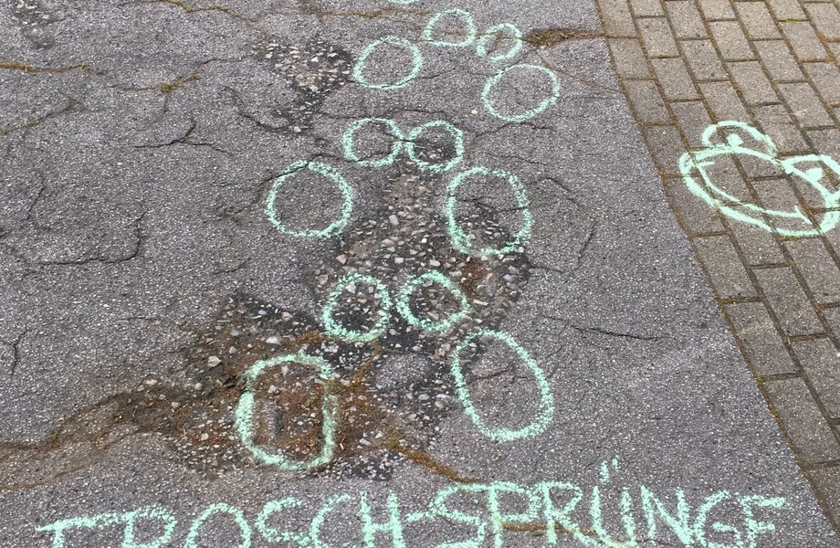 Nachdem das Kinderturnen nun schon einige Wochen ausfallen musste, gibt es jetzt eine kleine Alternative. Vor der Turnhalle der Kirchschule ist ein Parcour aus Kreide entstanden, in dem die Kinder ihre Geschicklichkeit testen und Spaß haben können. Solange es nicht regnet steht der Parcour jederzeit zur Verfügung (Bitte die Abstandsregelung einhalten!)