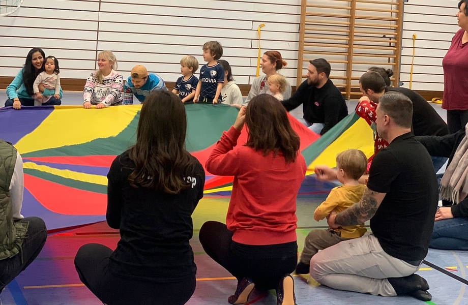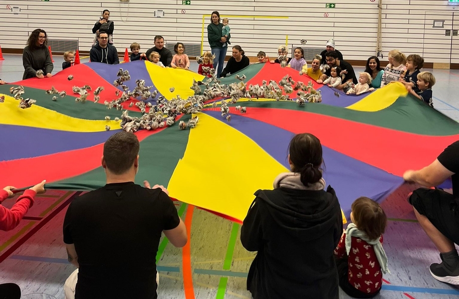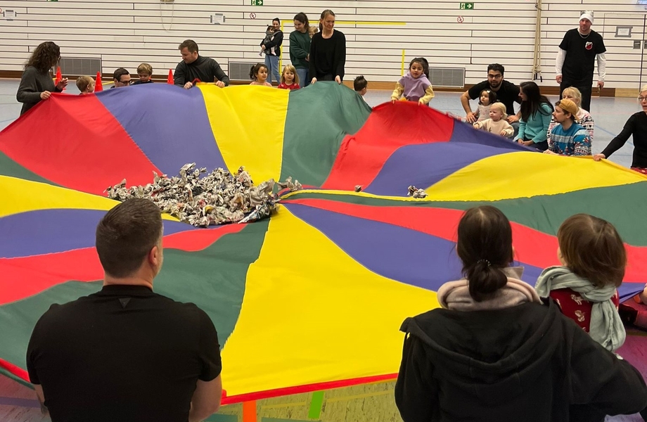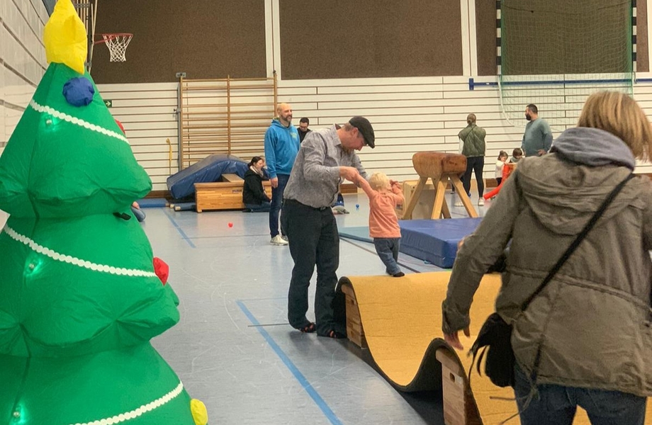 26 Kinder und ihre Familien folgten der Einladung und kamen gutgelaunt am Samstagnachmittag in die Sporthalle der Realschule Höntrop. Schneebälle aus Zeitungspapier verwandelten die Halle schnell in eine Winterlandschaft. Wir machten eine Schneeballschlacht, rodelten auf Teppichfliesen und flogen selber als Schneeflocken durch den Raum. Nach diesem gemeinsamen Anfang lud ein großer Bewegungsparcours die Kinder zum Turnen und Toben ein. Zwischendurch stärkten sich die kleinen Sportler mit Waffeln, Keksen und diversen Leckereien. Am Ende der Veranstaltung besuchte uns noch der Weihnachtsmann. Er brachte jedem Turnkind ein kleines Geschenk mit und beantwortete viele Kinderfragen.