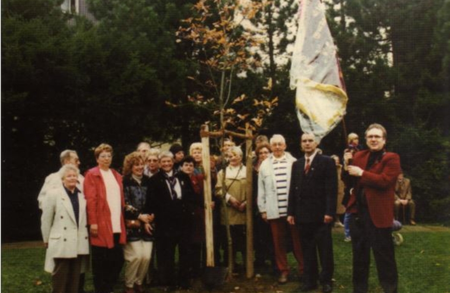 Die Pflanze war noch zu klein, um sie "frei" auszusetzen. Die damalige Geschäftsführerin des Vereins und das heutige Ehrenmitglied Ursel Hermbusche, die zusammen mit ihrem Mann Dieter die frühere Tankstelle gegenüber dem Kolpinghaus führte, waren bereit das Mitbringsel zunächst zu hegen und zu pflegen. So wurde die Eiche am 19. Juni 1987 im Garten von Ursel und Dieter Hermbusche vom 2.Vorsitzenden Horst Görke feierlich eingepflanzt.