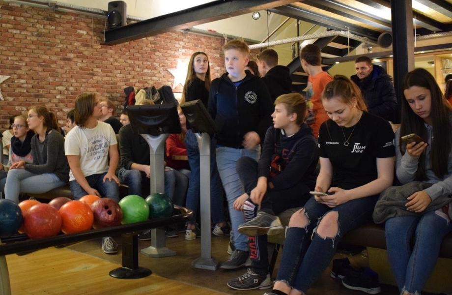 Um 13:30 Uhr trafen sich die 42 Jugendliche des Turnbundes Höntrop vor dem Bowlingtreff Bochum. Nach der allgemeinen Begrüßung wurden die Gruppen ausgelost, die gemeinsam an einer Bahn spielen würden. Hierbei wurden alle Jugendlichen wild gemischt, sodass an jedem Tisch ganz unterschiedliche Gruppen entstanden.