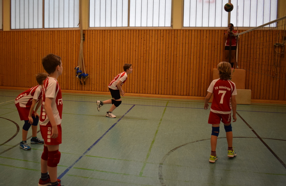 In der Folge stellte der Trainer die Rotationsreihenfolge etwas um, so dass das Aufbauspiel insgesamt besser funktionierte. Allerdings schaffte es der Gegner nun auch besser die Bälle aufzubauen, so dass die Partie insgesamt enger wurde. Zudem hatte Kapitän Tom nun einige Probleme bei seinem Aufschlag, der sonst für viel Durck beim Gegner sorgte. Allerdings konnte er das durch seine hohe Laufbereitschaft und der Unterstützung seiner Mitspieler mehrfach kompensieren. Am Ende ging aber auch dieser Durchgang auch Dank der nun lautstarken Unterstützung der Zuschauer mit 25:23 an die Höntroper Jungs.