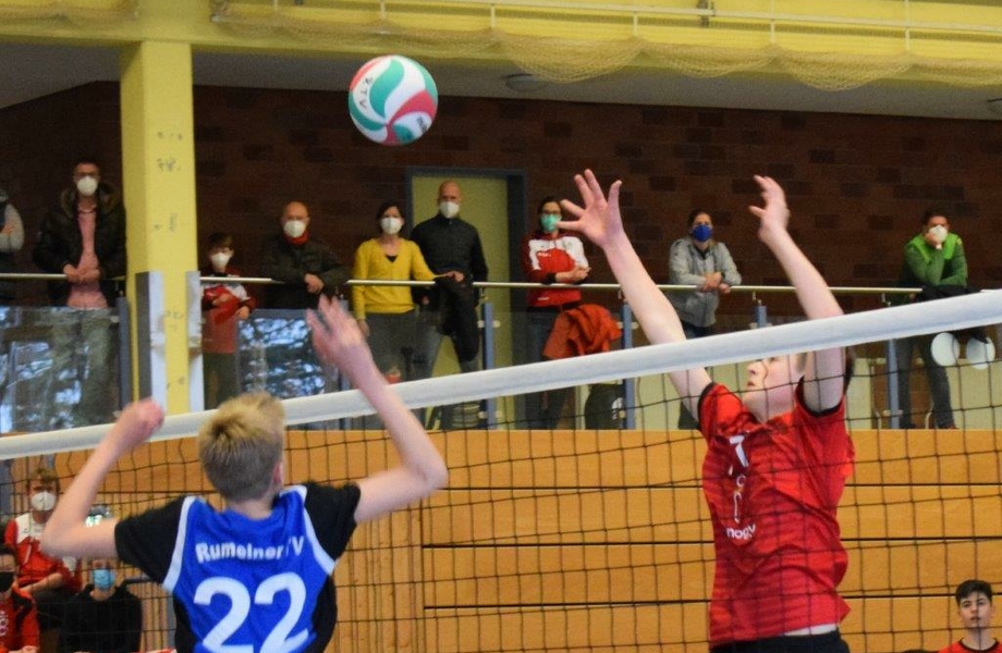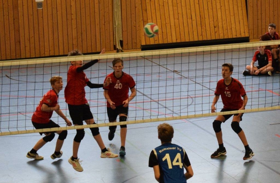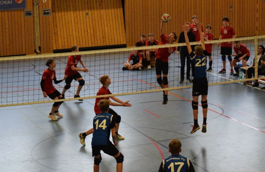 In der Gruppenphase musste das Team, wie sich später herausstellen sollte, gegen den Vizemeister Rumelner TV beweisen. Der erste Satz startete zunächst durchwachsen und es ergaben sich zu viele Eigenfehler, besonders im Aufschlag. Dadurch musste das Team durchweg einem Rückstand hinterherlaufen, was gegen technisch starke Rumelner keine einfache Aufgabe war. Dennoch konnten die Jungs sich stetig steigern und konnten vor allem im eigenen Angriff zunehmend Druck auf den Gegner ausüben. Dies sollte sich besonders für den zweiten Satz auszahlen. Der erste Satz ging dennoch deutlich mit 16:25 verloren.