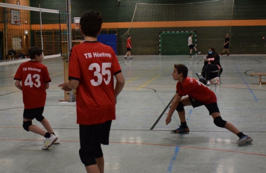 Das Team war wie eingefroren und zeigte kaum Bewegung ohne Ball auf dem Feld, wodurch kaum ein erfolgreicher Angriff produziert werden konnte. So war es auch nicht verwunderlich, dass ein 0:7 Rückstand gleich zu Beginn die Laune dementsprechend drückte. Erst durch einen verschlagenen Aufschlag des Gegners kamen die Höntroper Jungs an den ersten eigenen Aufschlag. Jedoch ging es von dort an auch nicht weiter steil hinauf und der Rückstand konnte nicht wirklich verkürzt werden. Der erste Satz ging somit unspektakulär mit 20:25 an Vogelsang.