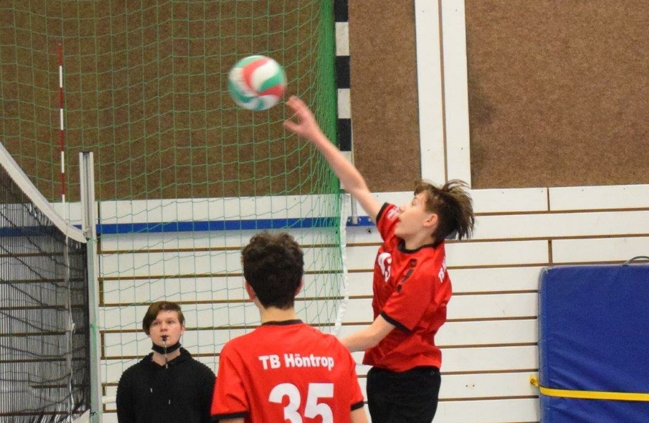 Im zweiten Spiel ging es für die Höntroper Jungs gegen den Dürener TV. Hier überraschte das Team durch ein deutlich bessere Leistung, als im vorangegangenen Spiel. Kaum noch Ängstlichkeit und eine deutlich bessere Laufarbeit im Zuspiel ermöglichten nun deutlich mehr Möglichkeiten. Es konnte in fast jedem Spielzug ein Angriff generiert werden, welche oft mit einem Punkt belohnt wurden. Auch im Block konnte hier der ein oder andere Punkt erspielt werden. Noch dazu konnte der Aufschlag an einigen Stellen Druck ausüben, was in einer Führung gleich zu Satzbeginn resultierte. Die nun deutlich bessere Leistung auf Seite der Spieler wurde mit dem ungefährdeten Satzerfolg (25:18) belohnt.
