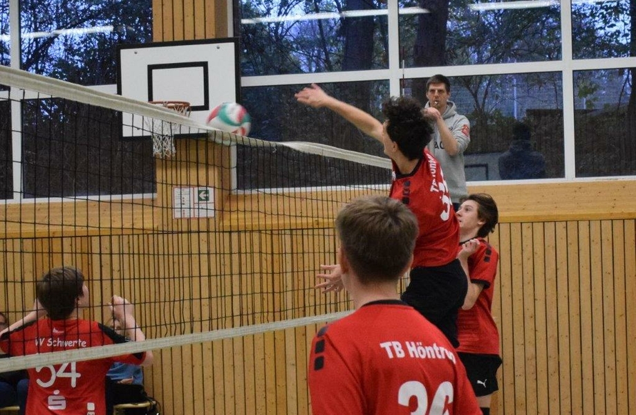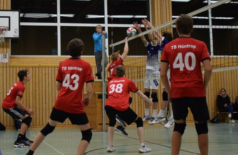 Im zweiten Satz konnte das Team nun auch deutlich konstantere Aufschläge von Beginn an abliefern. So erspielte Kapitän Paul mit seinen Float-Aufschlägen den ersten größeren Vorsprung (von 1:1 auf 6:1) und konnte auch mit einem ersten Hinterfeldangriff überzeugen. Außenangreifer Joscha kam bei 17:9 nochmal auf das Feld um die Tipps vom Trainer umsetzen zu können. Hier konnte der beste gegnerische Spieler kurze Zeit später mit einer langen Aufschlagsserie viel Druck ausüben und suchte sich hier den frisch eingewechselten Joscha aus. Gleichzeitig formierte sich am Netz ein guter gegnerischer Doppelblock den die Höntroper Angreifer mit purer Gewalt versuchten zu durchbrechen, ohne Erfolg. So konnte sich Telstar bis auf 20:20 herankämpfen und nun galt es sich zu fangen und den zweiten Sieg des Tages zu sichern. Schlussendlich konnte Joscha die Aufschlagsserie nach eigener Annahme durch einen guten Angriff durchbrechen und musste nun selber an den Aufschlag. Hier setze er den Gegner gut unter Druck und so konnte der TB Höntrop den zweiten Satz mit 25:20 für sich entscheiden.