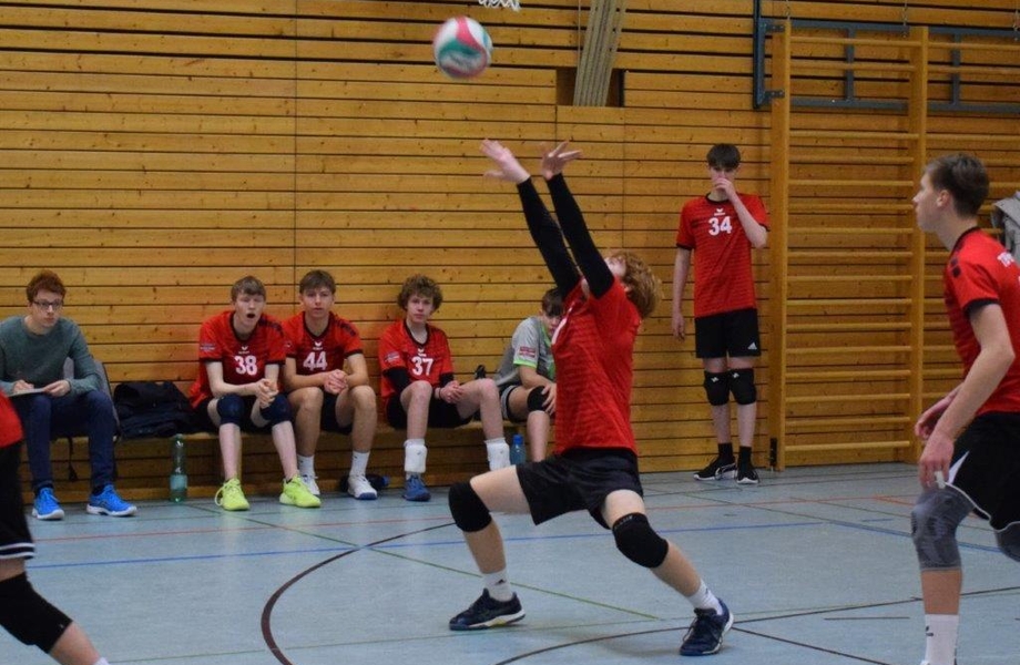 Im Auftaktspiel gegen die TuSA aus Düsseldorf startete das Team nach drei guten Aufschlägen von Florian direkt durch und lag so 4:0 vorne. Zwei weitere Serien von Aaron und Paul komplettierten den guten Start (13:3). Hier schien der erste Satz fast schon entschieden, aber der Gegner kämpfte sich noch einmal heran. In dieser mittleren Phase des Satzes gelang es dem Annahmeriegel zu selten den Druck aus dem gegnerischen Aufschlag zu nehmen und passgenau zum Zuspieler zu bringen. Aufgrund der für Aaron neuen Aufgabe ergab sich ohnehin etwas Unruhe im eigenen Aufbauspiel, durch die ungenaue Annahme wurde diese Aufgabe zusätzlich erschwert. Mithilfe einer Auszeit und Veränderungen der Annahme konnte der eigene Angriff bei 13:10 dann endlich zu einem Punkt umgewandelt werden und Florian brachte den ersten Satz mit erneut druckvollen Aufschlägen nach Hause (25:18).