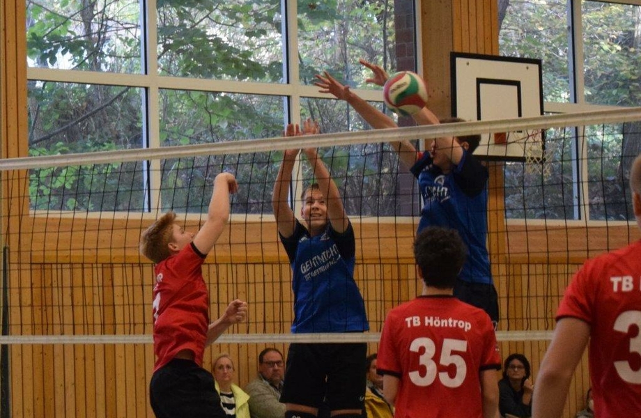 Der GV Waltrop verlor die ersten beiden Spiele jeweils 1:2 und der SuS Olfen gewann beide Spiele zum Auftakt. So war das Spiel gegen Waltrop eigentlich ein guter Auftakt in den Spieltag, bei dem Aaron krankheitsbedingt fehlte. So kamen Tom und Nick wechselweise jeweils erstmals als Diagonalspieler zum Einsatz. Allerdings wurde bereits beim Einschlagen klar, dass der Gegner keinefalls zu unterschätzen war, denn ein junger Ukrainer machte enorm viel Druck im Angriff. Im Verlauf des ersten Satzes, im dem die Höntroper viele Aktionen nicht konsequent zu Ende spielten, zeigte sich, dass jeder Ball vorne auf Oleksandr vom GVW gespielt wurde. Und diese machte immer wieder den Punkte über die Mitte (21:25).