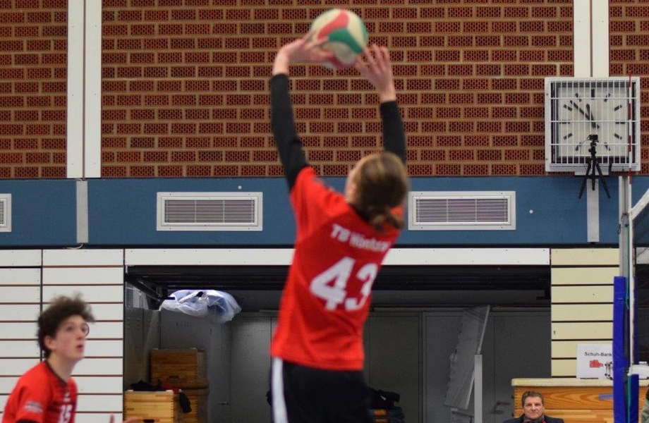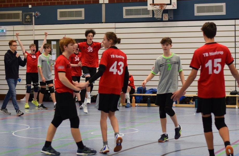 Nach diesem deutlichen Satzerfolg hieß es Konzentration hoch halten und weiter für jeden Ball kämpfen, denn sowohl in der Vorsaison, als auch im Erwachsenen-Spielbetrieb (dort wurden die Spiele gegen Massen bisher gewonnen), zeigte sich Massen als kampfstarke Mannschaft, die nicht allzu schnell einknickt. Und diese Vermutung bestätigte sich, da auf der gegnerische Seite die Abwehr und vor allem der Block nun deutlich öfter präsent war und den Höntroper Angriff häufiger entschärfen konnte. Hier war es vor allem Paul, der zuvor einige Male am Block gescheitert war, welcher mit viel Augenmerk Angriffe am Block vorbeizog und somit punkten konnte. Auch konnte das gesamte Höntroper Team durch gute Blockarbeit gegen den Massener Angriff halten und entschied durch beherzte Abwehrarbeit viele der langen Ballwechsel für sich. Wichtig für die Moral! Nachdem der erste Satzball bei 24:20 vergeben wurde und die nächsten beiden Bälle nicht zum benötigten Satzgewinn umgewandelt werden konnten, brachte eine Auszeit bei 24:22 die nötige Ruhe. Annahme Joscha, Zuspiel Ben, Angriff Artem, Punkt! Mit 25:22 gewinnt der TB Höntrop das letzte Spiel der U18 Oberliga mit 2:0 und wird somit Meister!