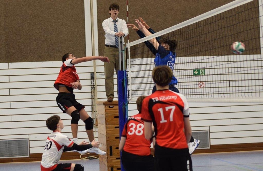 Lange fehlte die notwendige Konzentration im Aufschlag, zu viele Fehler aus einfachen Spielsituationen machten das Erspielen von Punkten schwer. Zur Satzmitte war es dann Paul, der mit richtig guten Topspin-Aufschlägen für eine erste Veränderung sorgte. Die Annahme des VfL konnte hier keine Lösung finden und war nun erstmals richtig unter Druck gesetzt. Diesen Aufschwung nahm die Mannschaft mit und zeigte im Sideout weniger Schwächen, wodurch der erste Satz nach einiger Arbeit mit 25:20 an Höntrop ging.