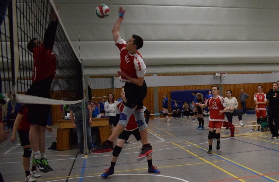 Während sich bei den Damen insgesamt 14 Teams gemeldet hatten (davon hatten sich dann acht für das Viertelfinale qualifiziert) waren bei den Herren insgesamt vier Mannschaften am Start. Die Auslosung bescherte dem TBH im ersten Halbfinale die Sportfreunde aus Gevelsberg. Schon im Halbfinale im Dezember 2016 trafen die Höntroper Jungs auf diese Mannschaft und unterlag damals noch klar mit 0:3 (13:25, 12:25, 18:25). Gute zwei Jahre später entwickelte sich heute ein munteres Spielchen und wenn die Höntroper nicht erneut einige Schwankungen offenbarten, wäre es ein klares Ergebnis geworden. So wurde es zumindest zwei Sätze richtig spannend.