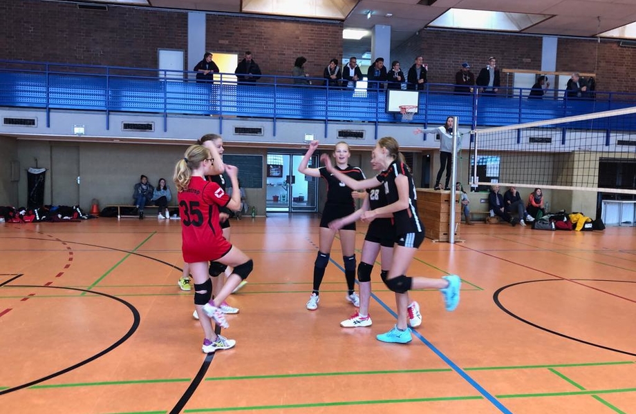 Im ersten Satz dominierten die Veler Mädchen, da vor allem eine Aufschlagserie das Höntroper Team aus dem Spiel warf. Verunsichert wurde das Team hier aber weniger durch die Anschläge, sondern durch den Läufer der gespielt wurde. Diese Situation brachte die junge Zuspielerin Melina an ihre Grenzen und das Team brauchte lange um sich wieder zu fangen. Das Team wurde jedoch aus dem Aufschlag heraus immer sicherer und konnte so einige schöne Spielzüge zeigen. Zuletzt verlor Höntrop den ersten Satz.