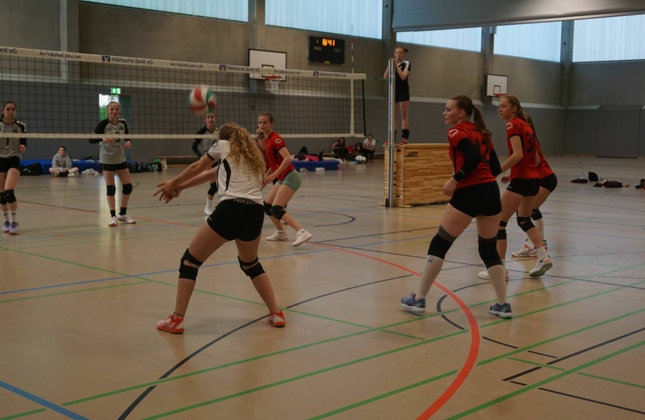 Der erste Gegner FdG Herne der Gruppenphase war dem Team aus der eigenen Staffel schon bekannt und der Auftakt des Turniers gelang dem Höntroper Team einwandfrei. Schnell wurde ein sicherer Vorsprung erspielt und es konnten die ersten taktischen Wechsel des Tages ausprobiert werden. Nach einem klaren 2:0-Sieg ging es als nächstes gegen den EVC Massen aus der Parallelstaffel. Auch in dieses Spiel wurde gut gestartet, jedoch zeigte Massen eine hervorragende Abwehrleistung, sodass das Höntroper Team ein wenig überfordert war mit der Gegenwehr. Erst gegen Ende des Satzes hatten sich die Mädels auf die vielen Dankebälle eingestellt und konnten nun mit starken Angriffen den Satz für sich entscheiden. Im zweiten Satz gelang es von Anfang an das eigene Spiel fast fehlerfrei durchzusetzen und somit ging auch das zweite Spiel mit 2:0 an Höntrop.