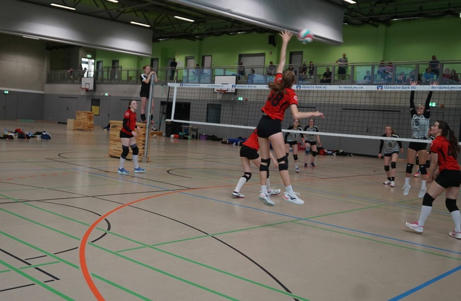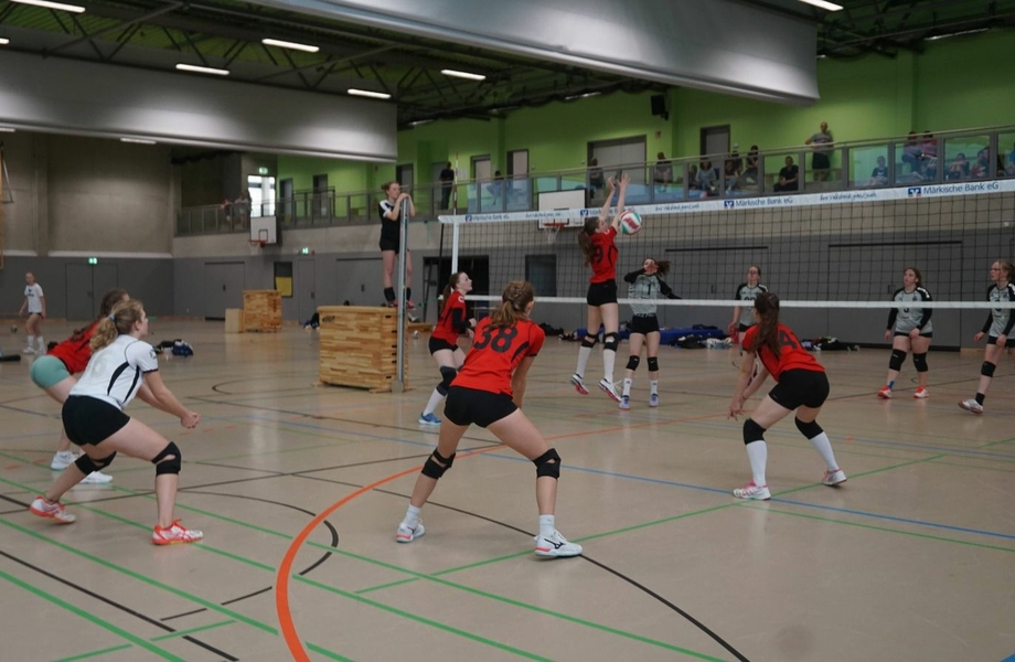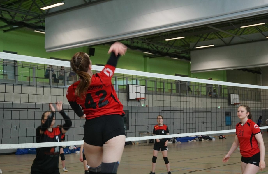 Im Halbfinale ging es dann wie schon in der Saison gegen den TV Gerthe, der zuvor ein sehr knappes Spiel gegen den TV Eiche Grüne, den Favoriten der anderen Staffel, gespielt hatte. Aber auch im dritten Spiel des Tages ließen die Mädels ihrem Gegner keine wirkliche Chance und zeigten mit einem sehr souveränen Spiel, wo es an diesem Tag hingehen sollte, nämlich ins Finale. Egal welche Aufstellung an diesem Tag auf dem Feld stand, es wurde in jeder Kombination sehr mutig und konsequent gespielt und kontinuierlich angefeuert. Mit einem weiteren 2:0-Sieg gegen Gerthe ging es im Finale gegen den TV Eiche Grüne, der sich ebenfalls in der Liga und im Turnier gegenüber den anderen Teams durchsetzen konnte. Bei den ersten Punkten des Finales war den Mädels deutlich die Nervosität anzusehen, es wurden einige Eigenfehler gemacht und Eiche Grüne konnte mit vier Punkten in Führung gehen. Nach einer Auszeit und der Vorgabe weiterhin mutig zu spielen gelang es den Rückstand aufzuholen und sogar in Führung zu gehen. Es blieb jedoch ein spannendes Spiel auf Augenhöhe und durch eine gute Aufschlagserie konnte sich Eiche Grüne die bessere Ausgangslage gegen Ende des ersten Satzes erspielen und den Satz mit 23:25 für sich entscheiden. Im zweiten Satz hieß es noch einmal von vorn anzufangen. Dieses Mal gelang der Start besser. Viele der langen Ballwechsel konnte Höntrop für sich entscheiden, wobei besonders Melina Decker als Libero Stabilität in die Annahme und Abwehr brachte, sodass fast immer angegriffen werden konnte. Ab Mitte des Satzes zeichnete sich ein Vorsprung für die Höntroper aus, den Eiche Grüne nicht mehr aufholen konnte. Mit viel Motivation und Lautstärke ging es also in den entscheidenen Tie-Break. In dem bisher anspruchsvollsten Spiel der gesamten Saison gelang es Marlene zum Seitenwechsel einen kleinen Vorsprung mit starken Aufschlägen zu erspielen. Mit einer super Teamleistung konnte die U20 den Tie-Break für sich entscheiden und beendet die Saison damit ungeschlagen als Sieger des Bezirksfinales.