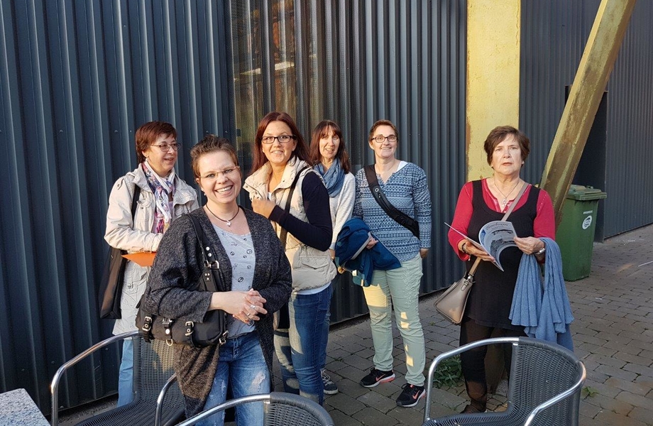 Nach einem lecketen Imbiss im ehemaligen Pumpenhaus, welches als Kantine für Künstler und Mitarbeiter, aber auch gastronomisch für die Öffentlichkeit genutzt wird, trafen wir auf die fachkundige Mitarbeiterin Frau Brockmann, die ihren Job mit Leib und Seele macht und uns alles zur Entstehung des Bochumer Vereines, der Jahrhunderthalle und der Geschichte der Stahlproduktion erklärte.