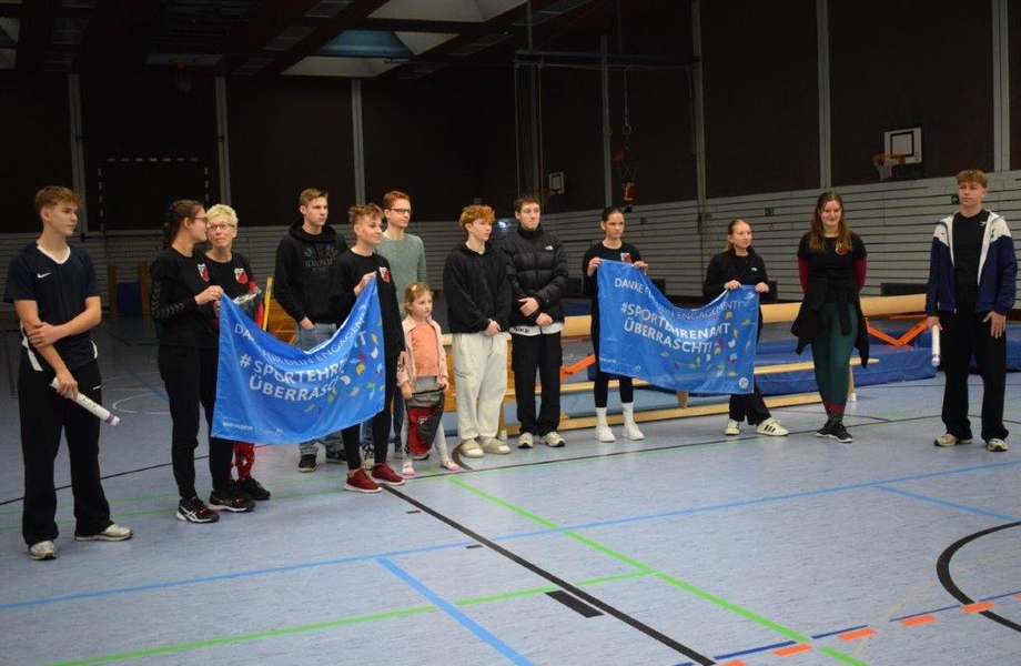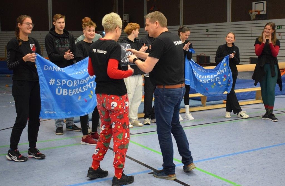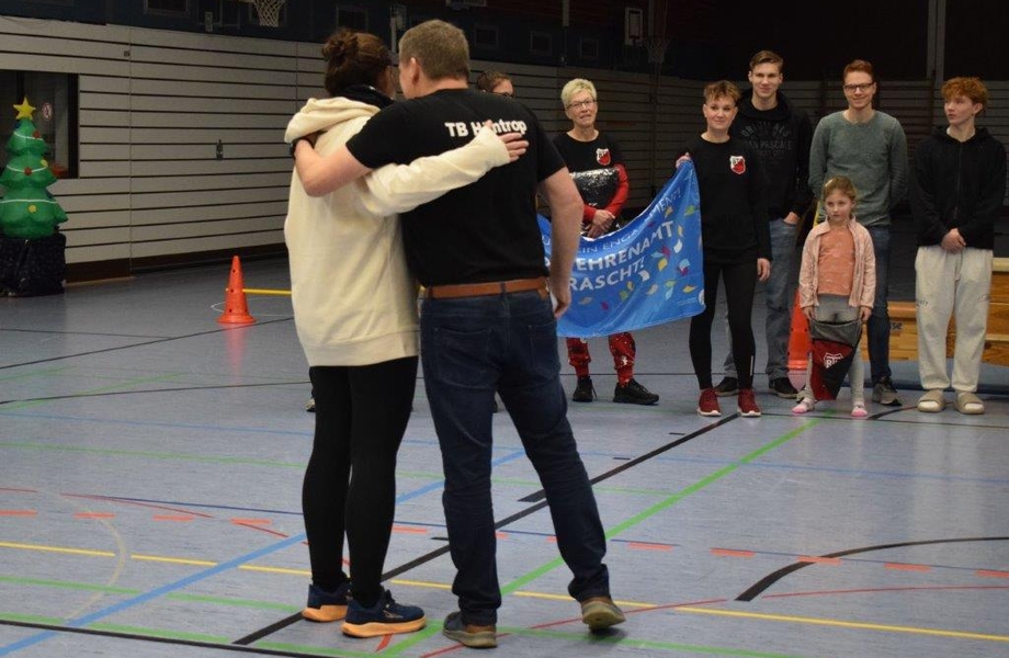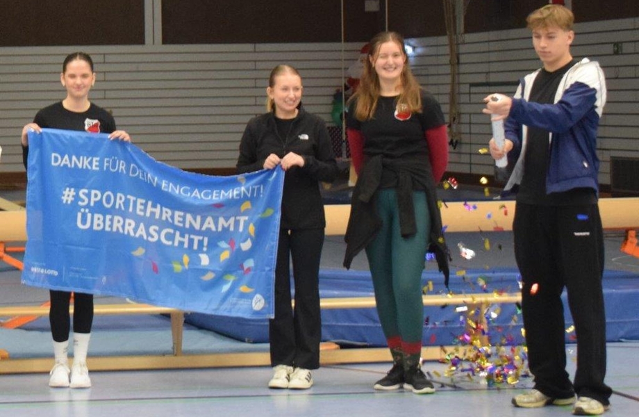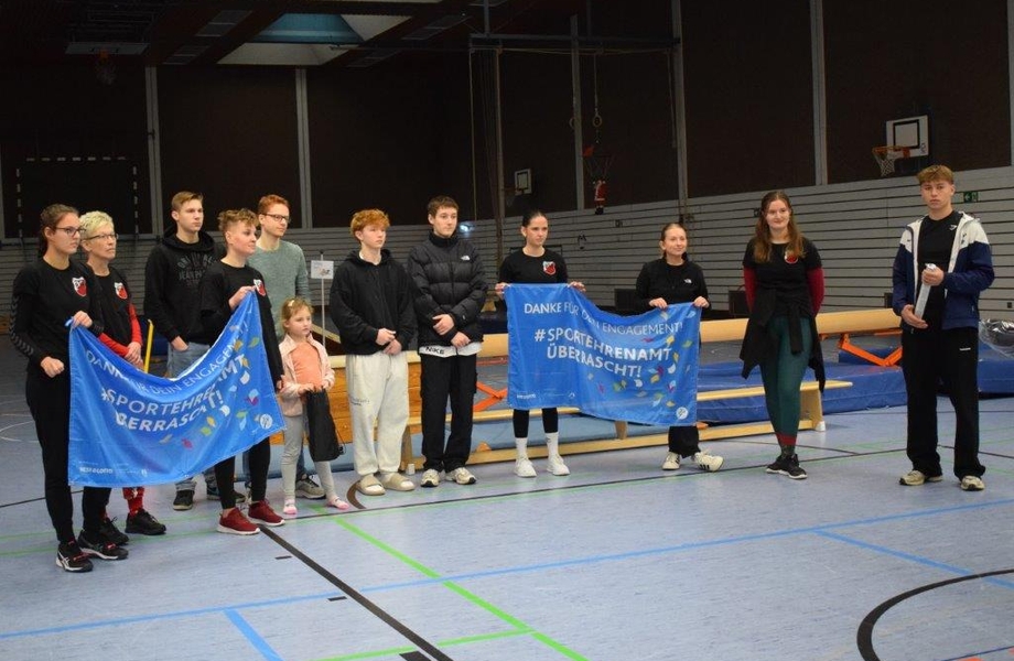 Und viel tun dies vor allem still und leise und ohne darüber viel Aufhebens zu machen. Über das Jahr 2024 wurden – verteilt in drei Runden – insgesamt 1.500 Ehrenamtliche in Vereinen mit einem herzlichen Dankeschön und einem Präsente Paket überrascht. Nachdem der Turnbund von der Aktion erfahren hat konnte er sich in 2024 in zwei Runden erfolgreich um entsprechende Pakete bewerben. Die beiden Pakete gingen dabei an Fynn Eusterfeldhaus und Melanie Heermann.