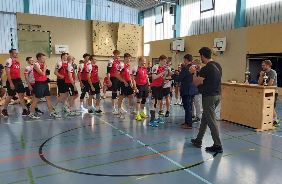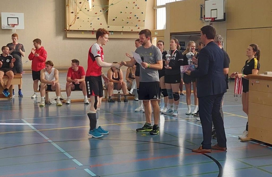 Leider hat sich Außen-/Annahmespieler Florian gleich beim zweiten Ball im Finale bei einer Abwehraktion an der Hand verletzt. Zunächst sah dies auch gar nicht gut aus und mehrere Brüche konnten anhand der Schwellungen und Schmerzen nicht ausgeschlossen werden. Aktuell scheint es glücklicherweise doch nicht so schlimm zu sein und er könnte mit einer deutlich kürzeren Ausfallzeit davonkommen.