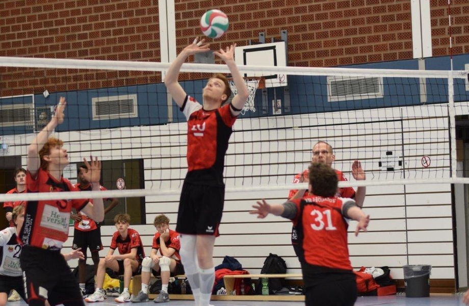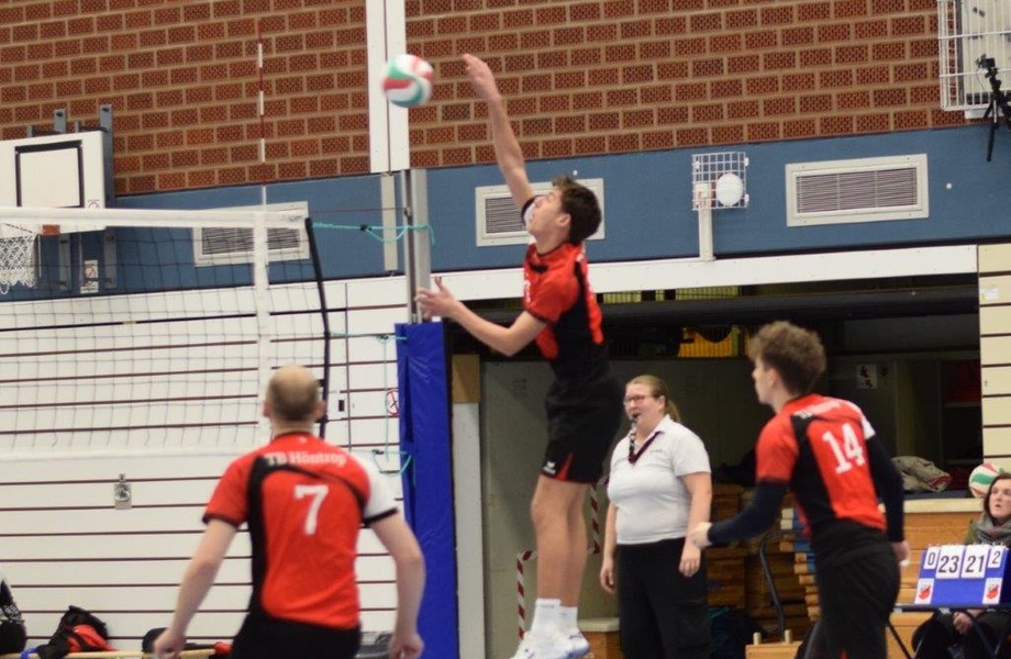 Das war unnötig knapp und so ging es mit gleicher Aufstellung und gestärktem Selbstvertrauen in den nächsten Satz. Hier war es dann Florian, der nach ausgegelichenem Beginn mit platzierten Aufschlägen aus dem 8:7 eine klare 15:7-Führung machte. Am Ende ging der Satz deutlich mit 25:14 an die Höntroper. Da mit dem einen Punkt der Klassenerhalt zwar noch nicht zu 100 % gesichert, aber höchstwahrscheinlich war, verzichtete der Trainer auf Mittelblocker Florian, der bislang nicht eingesetzt wurde und so auf jeden Fall in der gleich ebenfalls spielenden dritten Mannschaft spielberechtigt blieb, und sich auf den Weg machen konnte.