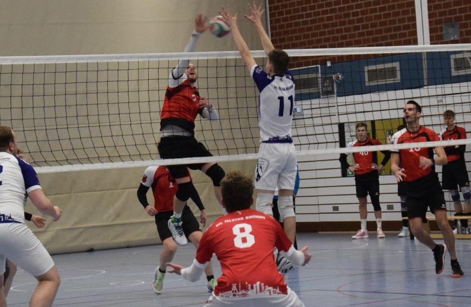 Zu einem echten Krimi entwickelte sich dann der zweite Satz, in dem die Höntroper Spieler zunächst die hohe Konzentration aus dem Auftaktsatz vermissen ließen. Telstar spielte nun effektiver und setzte vor allem im Service ein paar Akzente. Nach dem 5:8 folgte sogar mit 6:13 der größte Rückstand im gesamten Spiel. Aber Höntrop kam nun mit Artem für Florian über Außen immerwieder heran, aber konnte erst beim 21:21 ausgleichen, ehe beim 23:22 die erste Führung gelang. Es folgten beim 24:23 und 25:24 zwei Satzbälle, die jedoch nicht genutzt werden konnten. Nach der Abwehr eines Satzball für den VfL (25:26) konnte auch der dritte und vierte eigene Vorteil beim 27:26 bzw. 28:27 nicht genutzt werden. Es folgte ein weiterer abgewehrter Satzball (28:29), ehe der Gast dann bei seiner dritten Satzchance zupackte und diesen glücklich mit 29:31 gewann. Letztlich wurde der Satz durch zu einfache Fehler und vor allem einiger falscher Entscheidungen auf Seiten der Höntroper Spieler leichtfertig aus der Hand gegeben.