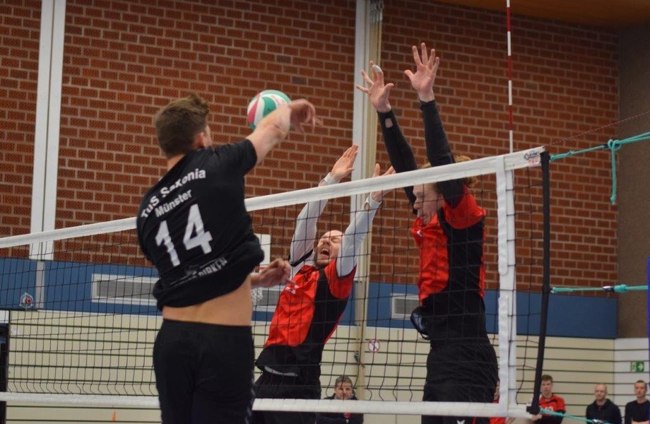 Im vierten Satz lagen die Höntroper zwar schnell mit 1:4 hinten, aber dannach entwickelte sich ein klasse Schlagabtausch mit wechselnden Serien im Service. Bei der zweiten Auszeit des TBH-Trainers lag die Mannschaft noch mit 20:21 hinten, um nach der Ansprache mit 23:21 in Führung zu gehen. Beim 24:22 hatte das Team dann die ersten beiden Matchbälle, die aber in dieser intensiven Spielphase nicht kühl genutzt werden konnten. Es musste dann ein Satzball beim 24:25 abgewehrt werden, ehe sich beim 26:25 die dritte Siegchance bot. Aber auch die konnte leider nicht genutzt werden. Die letzte Chance den Verfolger in der Tabelle deutlich zu distanzieren gelang auch beim 27:26 nicht. Beim 27:28 wurde der zweite Saxonia-Satzball noch abgewehrt, ehe dann beim 28:30 der Satz noch sehr intensiven 35 Minuten doch noch an Münster ging.