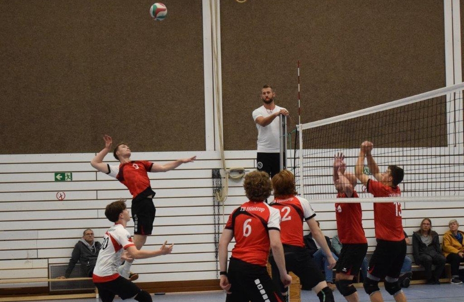 Der zuletzt so schwierige Spielaufbau war zusammen mit den beiden Annahmespielern Bjarne und Artem, der dank Doppelspielrecht weiter beim Turnbund aktiv sein kann, plötzlich kein Problem mehr. Allerdings zeigte sich zwischendurch dann doch noch mal die noch nicht komplett abgelegte Unsicherheit, denn eine 11:6-Führung wurde bis zur Crunchtime wieder verspielt (20:21). Da war es gut, dass die auf ihr eigenes Spiel wartenen Spieler der 3. Mannschaft noch in der Halle waren und als Alternative zur Verfügung standen. Ein Doppelwechsel im Zuspiel und auf der Diagonalen und die Höntroper konnten die Crunchtime für sich entscheiden.